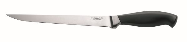 Noże z serii FunctionalForm, z charakterystycznymi pomarańczowymi akcentami, które wyróżniają tę serię, to jedna z najpopularniejszych linii produktów firmy Fiskars. Rękojeść Softouch® z osłoną na palce gwarantuje pewny, wygodny uchwyt, dzięki czemu nóż dobrze układa się w dłoni.